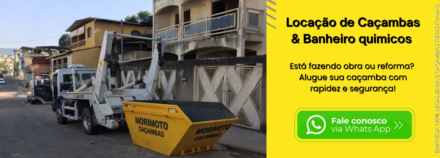Oferecemos locação de caçambas para obras, reformas e limpezas em geral, com entregas rápidas e seguras. Também trabalhamos com banheiros químicos para obras e eventos, garantindo praticidade, higiene e conforto. Nosso compromisso é oferecer soluções eficientes e pontuais para cada necessidade.